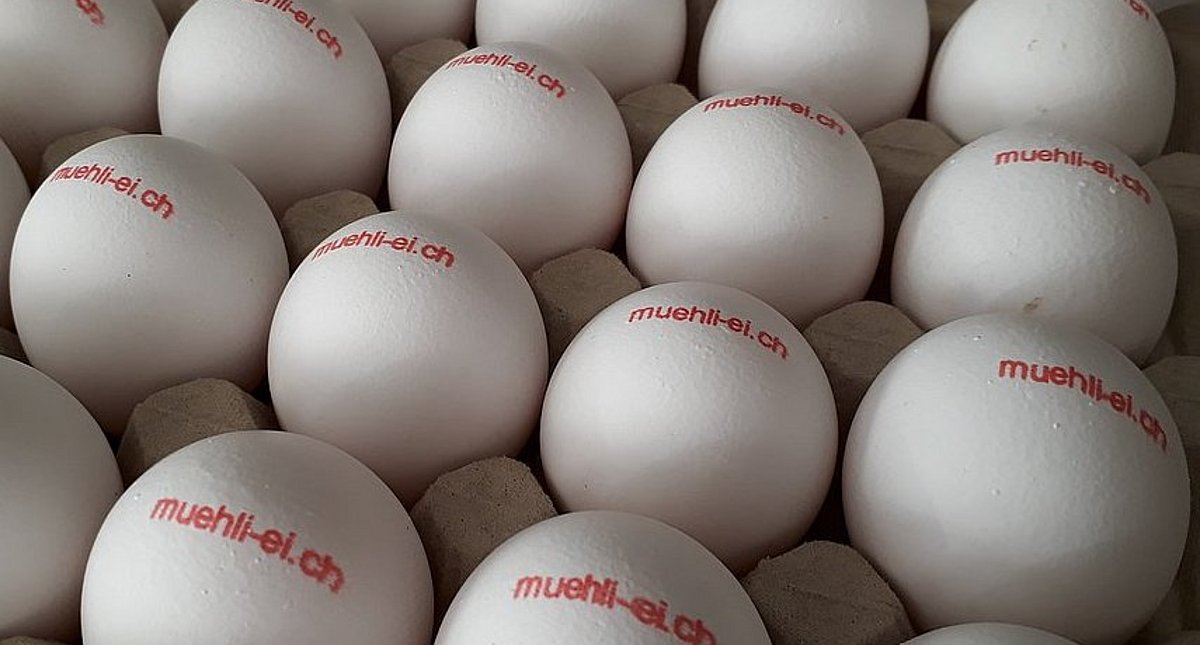 Die Eier werden über ein Förderband aus dem Stall geholt und dann in sorgfältiger Handarbeit sortiert und kontrolliert. Ein Drittel der täglich knapp 6000 Eiern vermarkten wir direkt über Läden und Restaurants in den Regionen Steckborn - Kreuzlingen und Müllheim. Die restlichen zirka zwei Drittel werden dem Grosshandel (Eico AG) verkauft, welche wiederum über die grossen Detailhändler an die Konsumenten gehen.